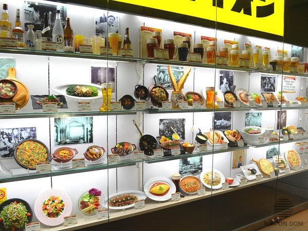 Why food and drinks models are displayed in «Ginza Lion» bar display windows.