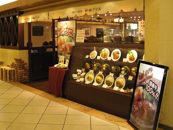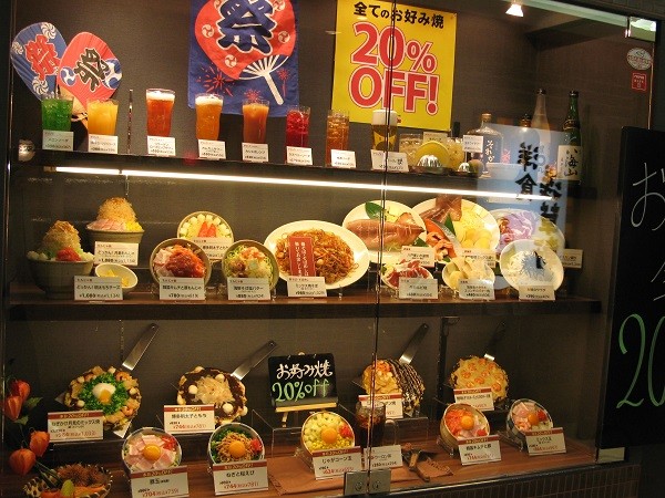 - cards in front of plastic food replicas in the display window inform passers-by about names of dishes and their cost