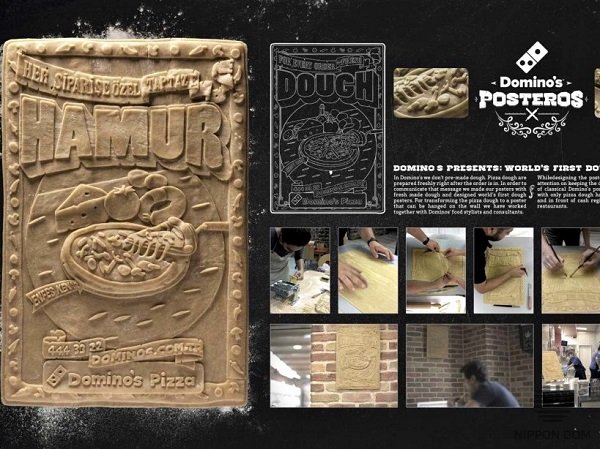 In collaboration with an advertising agency, a Domino’s Pizza Food stylist created a one-of-a-kind billboard made entirely of real pizza dough. The design was not only creative but also visually stunning: carefully crafted letters and realistic pizza ingredients made it truly eye-catching.