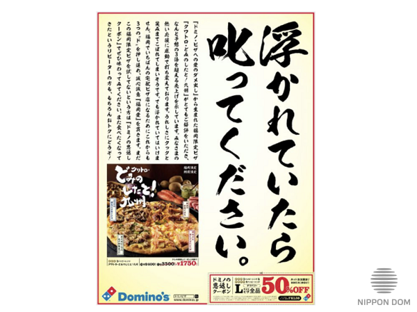 Contrary to expectations, the campaign received an overwhelmingly positive response, with customers sending countless messages of appreciation for the brand. The collaboratively developed «Quattro Domino Kyushu» pizza achieved record-breaking sales.